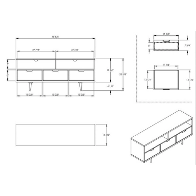 Easily update your living space in a stylish, mid century modern fashion with the Cara Mid Century Modern 3 Drawer 58” TV Stand from Saracina Home. Tapered legs, cutout drawer handles, and open shelving create a stylish and functional design for your living room. The beautiful, natural wood grain finish of the sustainable solid pine build promise an organic touch and durable construction. Place your electronics within the two open cubbies, each of which include a cord management port to keep cables orderly. Movies, games, and remote controls can be stored in the entertainment console’s three spacious drawers. The low profile ensures that TVs up to 65 inches will sit at a comfortable viewing height for you and your guests.
