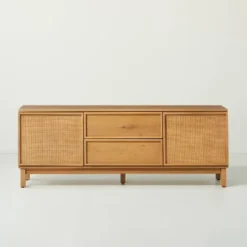 Give your media space a modern upgrade with the Aiden Lane Glacerad Reclaimed Wood Media Console. Two spacious cabinets tuck away spare electronics or cinematic favorites, while center media shelves display knickknacks or organize cords. Rustic reclaimed wood forms the sophisticated design, featuring diamond accents and sleek metal legs. Enhance your contemporary space when you add this TV stand to your living room or den.